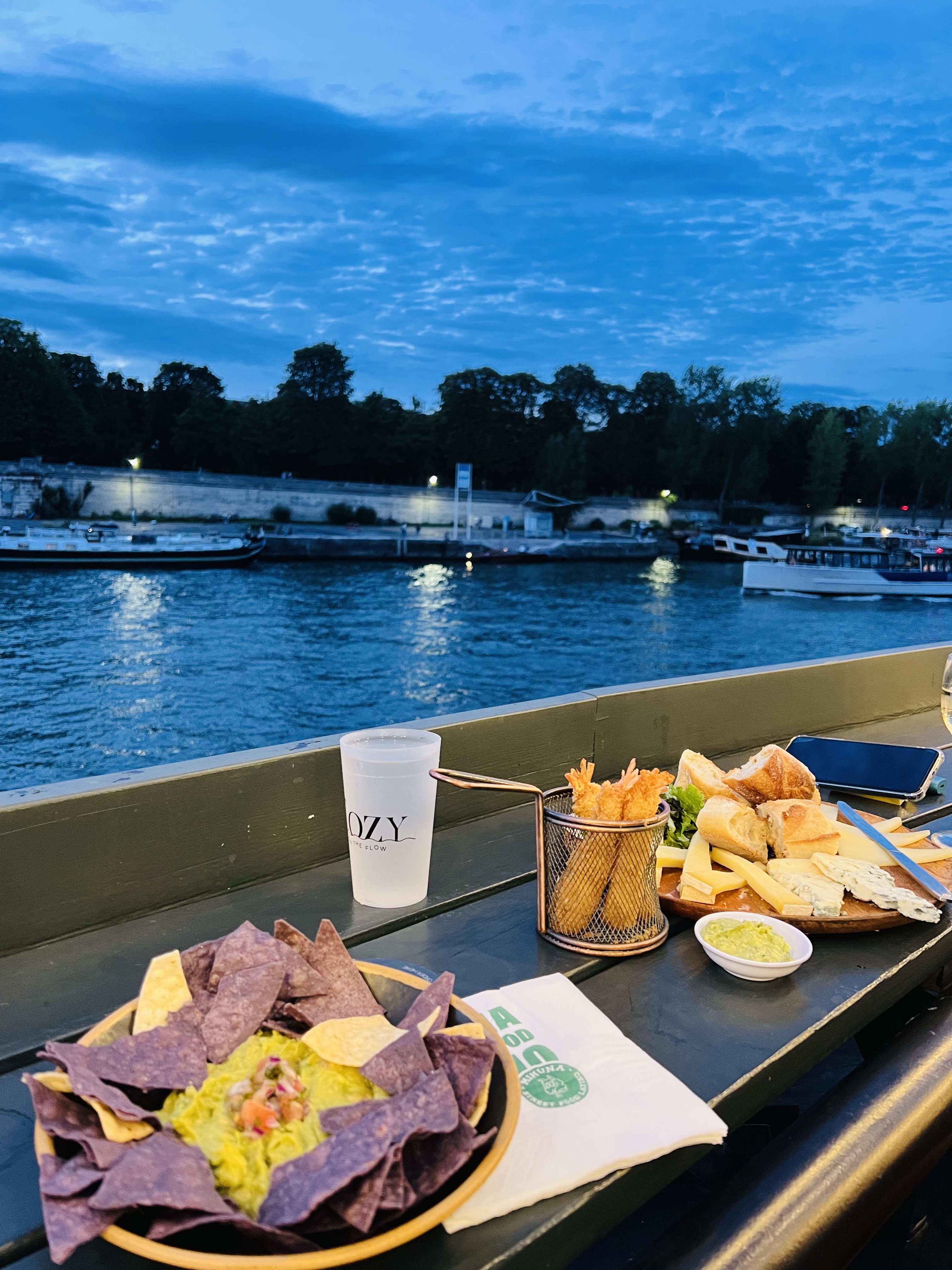Sans âme, pas d ambiance (population de cadres moyens). Service aimable. Snacks appétissants (d'où les généreuses 4 étoiles sans ça j'aurais mis 3). Pour boire un verre sur les quais c'est sympa (si vous êtes avec vos amis) mais pas sur le bateau.
