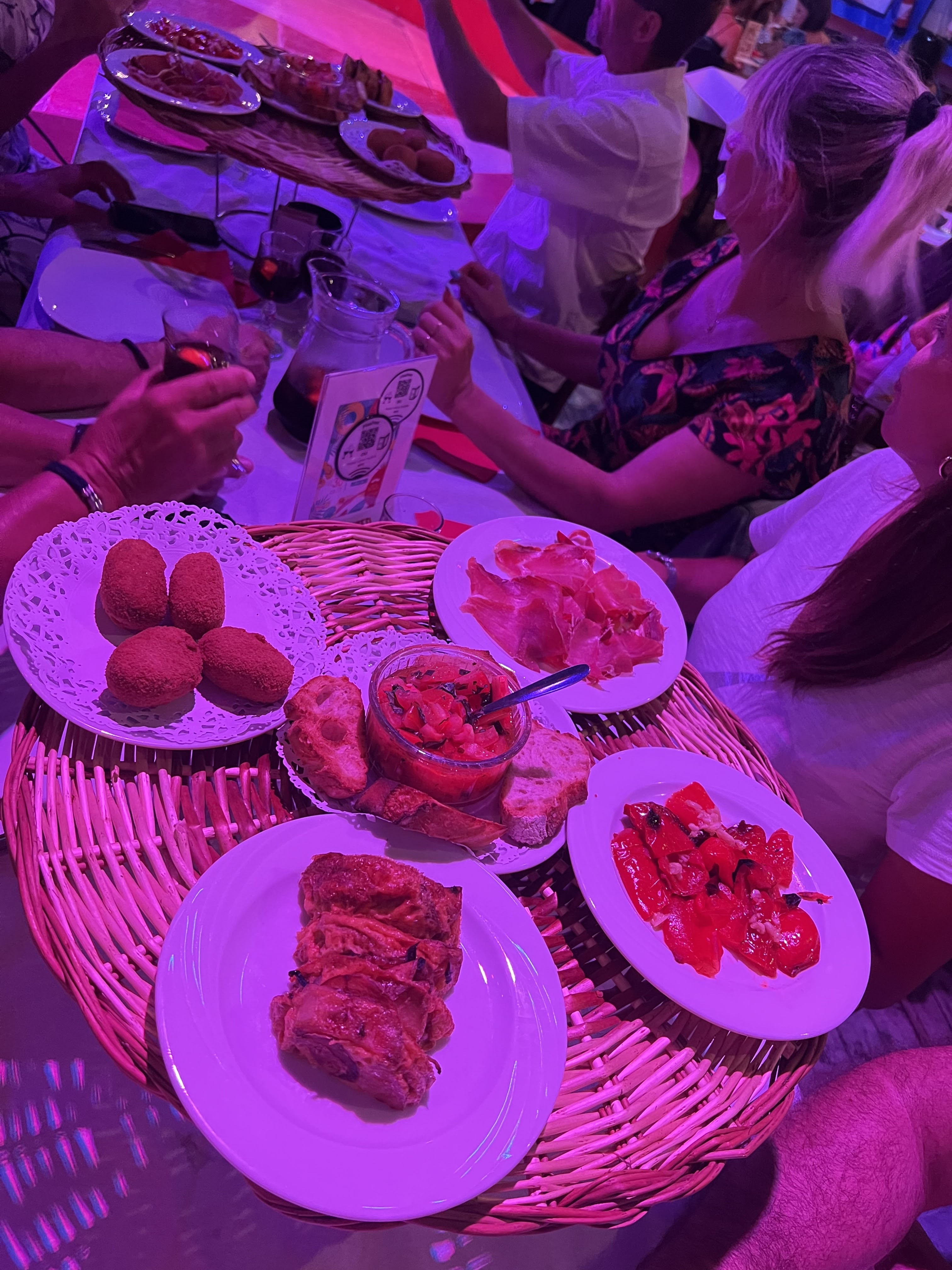 Soirée entre copines d une cinquantaine d années. On m'avait dit beaucoup de mal de la nourriture, en fait je l'ai trouvée bonne. Nous avons testé un plateau tapas, un plateau charcuterie et plateau vegan. J'ai moins adhéré au dernier mais j'ai bien aimé les produits proposés dans les 2 premiers. Vendus 15€/plateau pour 2/3 personnes. Pour 5, nous avons pris 3 plateaux en tout et il fallait ça, alors que nous n'avons pas de très gros appétits. Sangria correcte sans plus. Le cadre est sympa, conçu comme une piste de cirque, pour la danse, les tables situées tout autour. Le début de la soirée a été animée par une chanteuse avec une voix très puissante. Ensuite, musique des années 80 essentiellement. Souvenirs, souvenirs.. vraiment très sympa. La seule chose qui m a gênée est est le fait que la musique est vraiment très forte et empêche toute discussion à table.